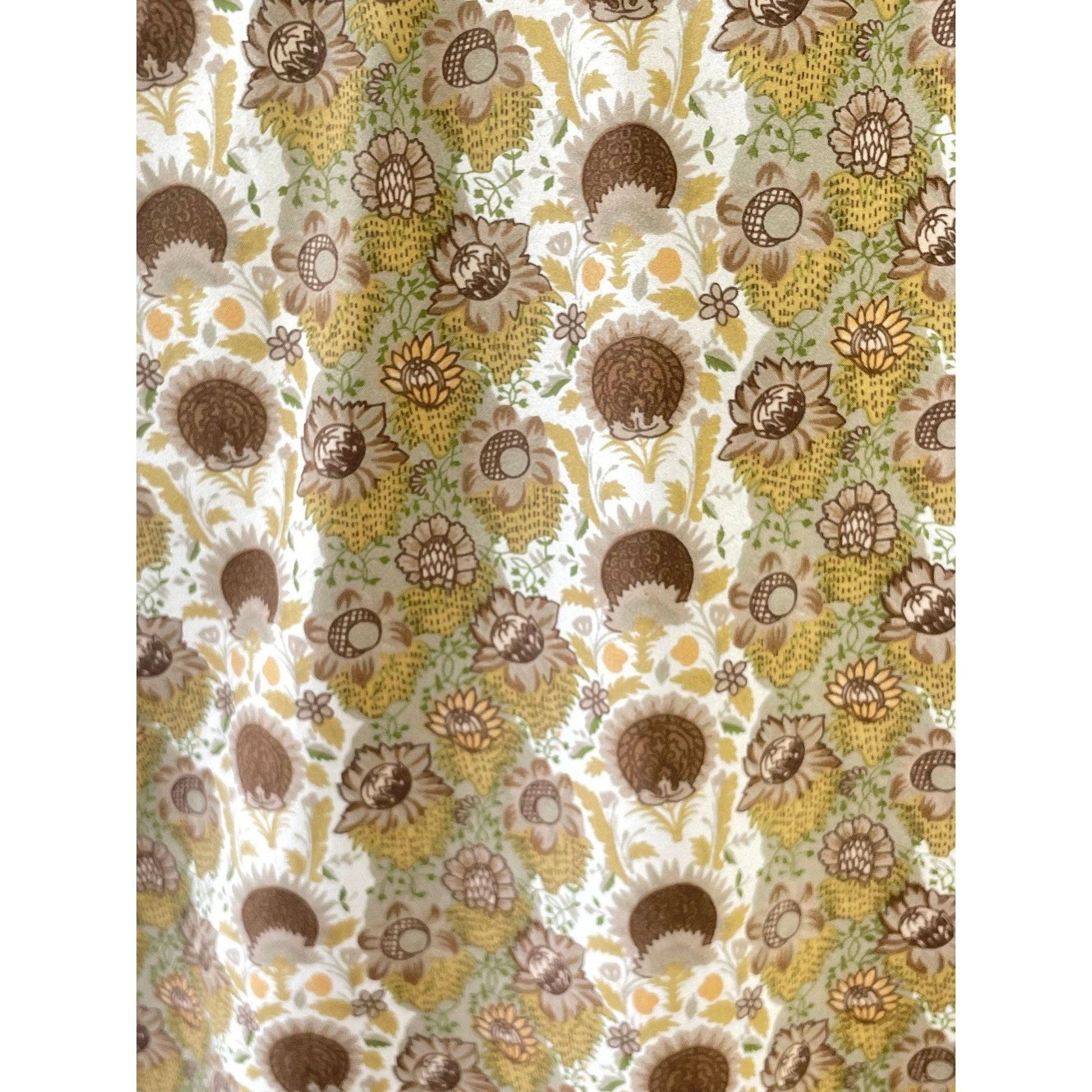 band collar, long sleeves and buttons on the front. Sunflowers in a striped pattern