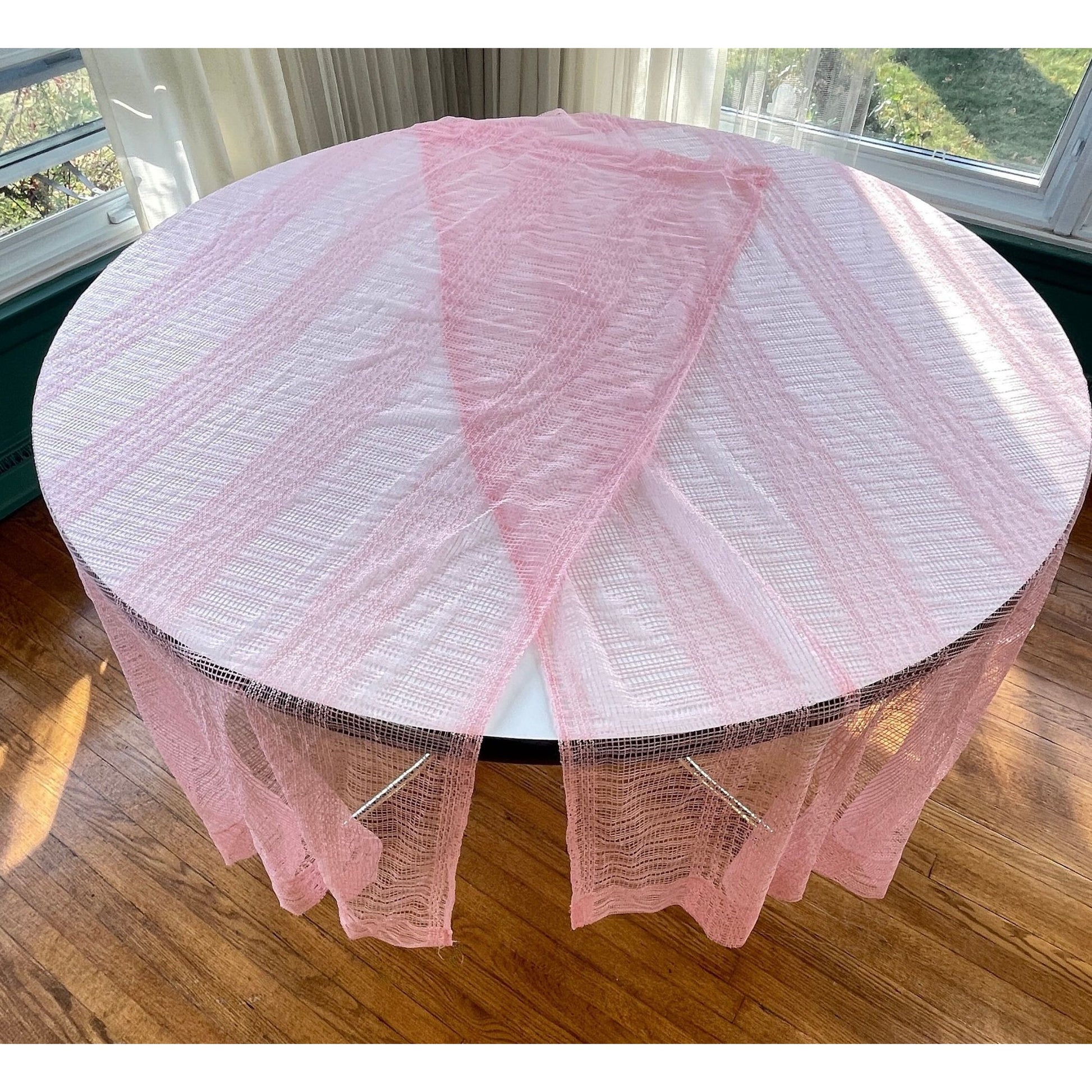 Vintage 80s curtain, blush pink mesh