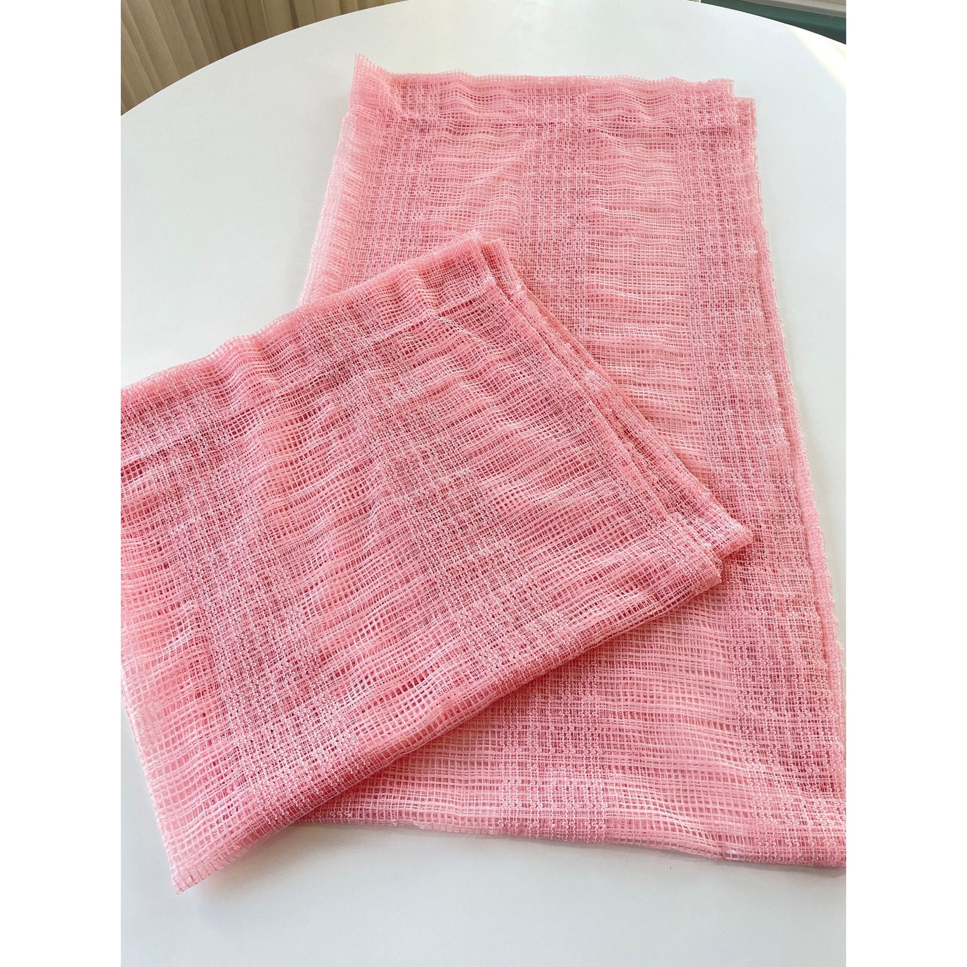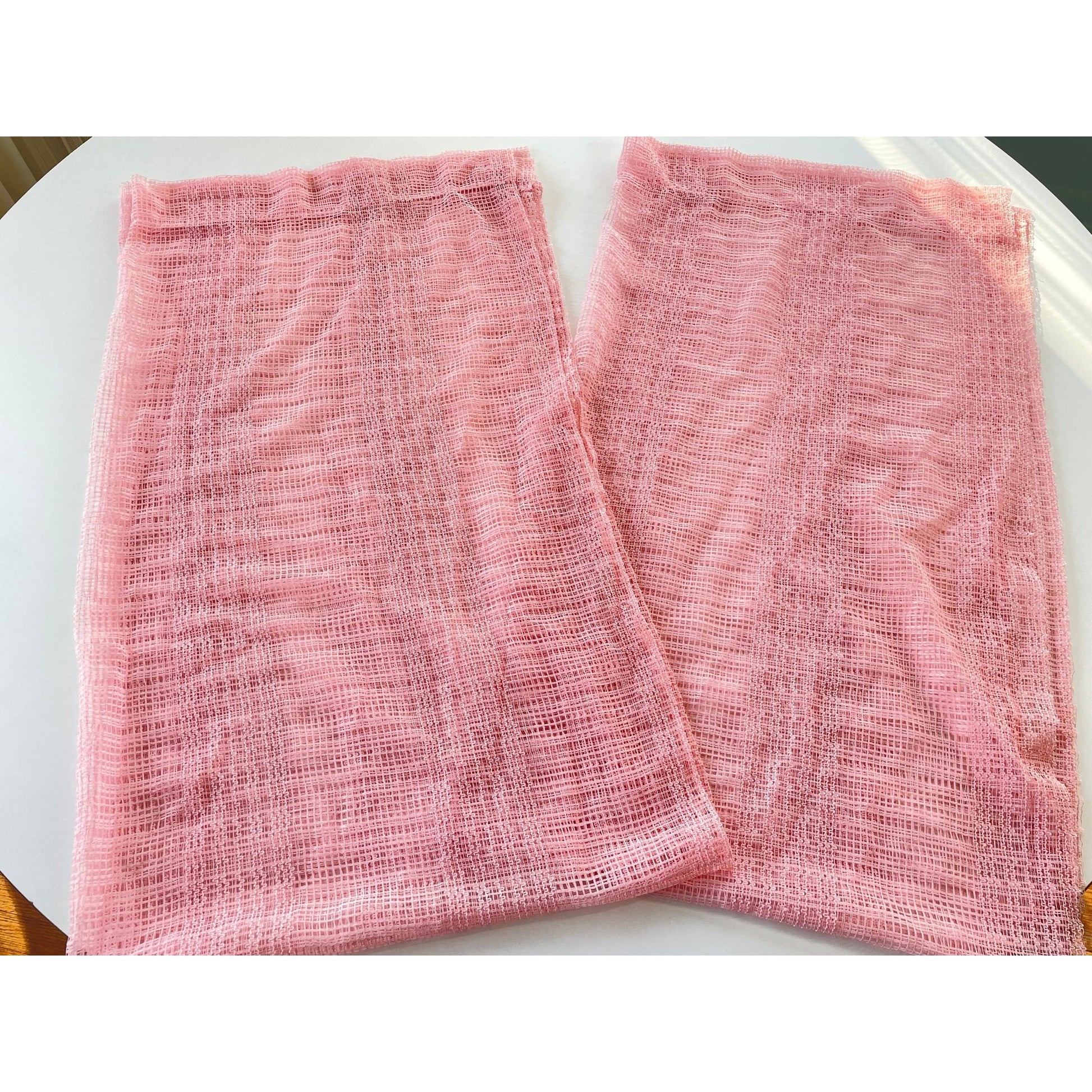 Vintage 80s pink mesh curtain, price per panel, 2 are available.