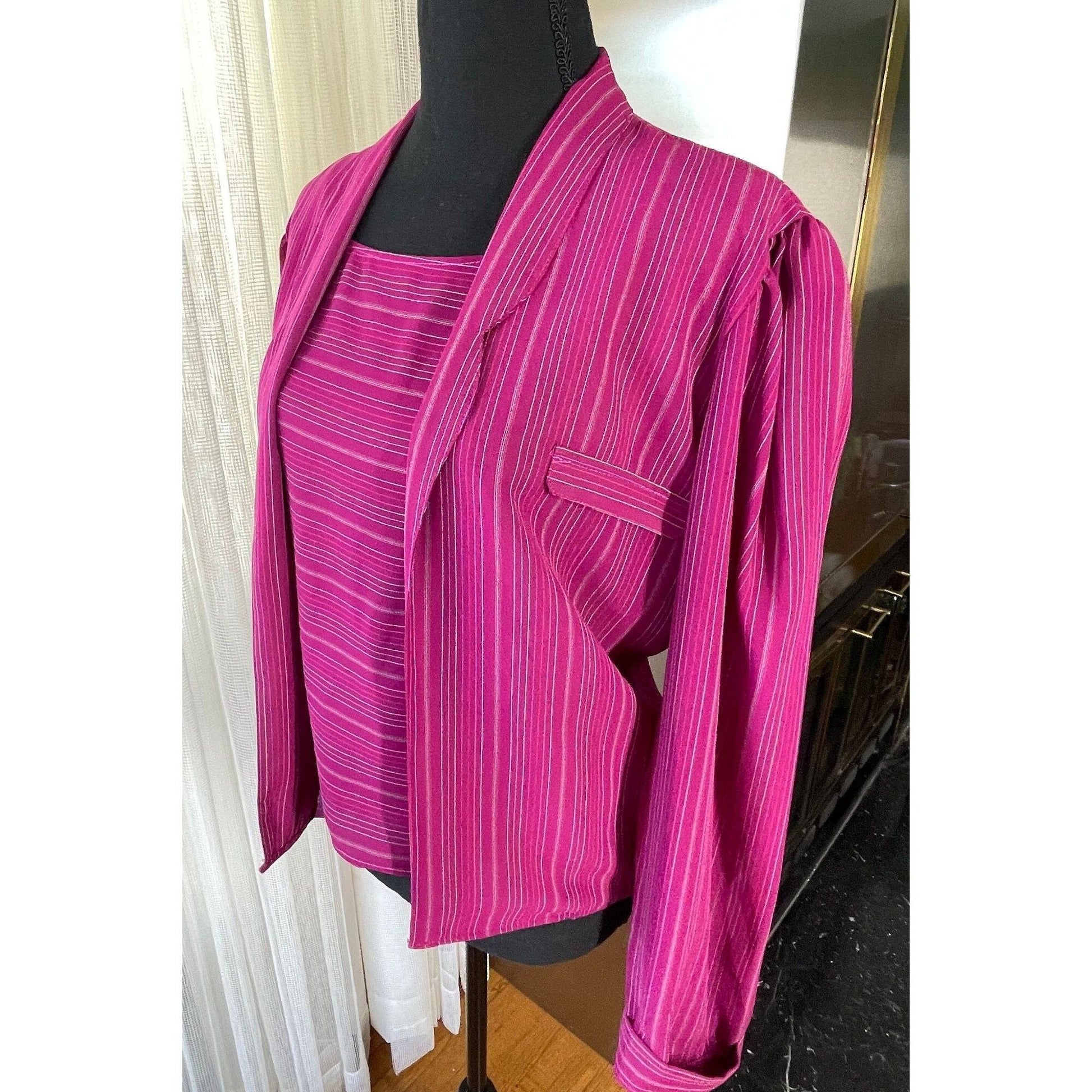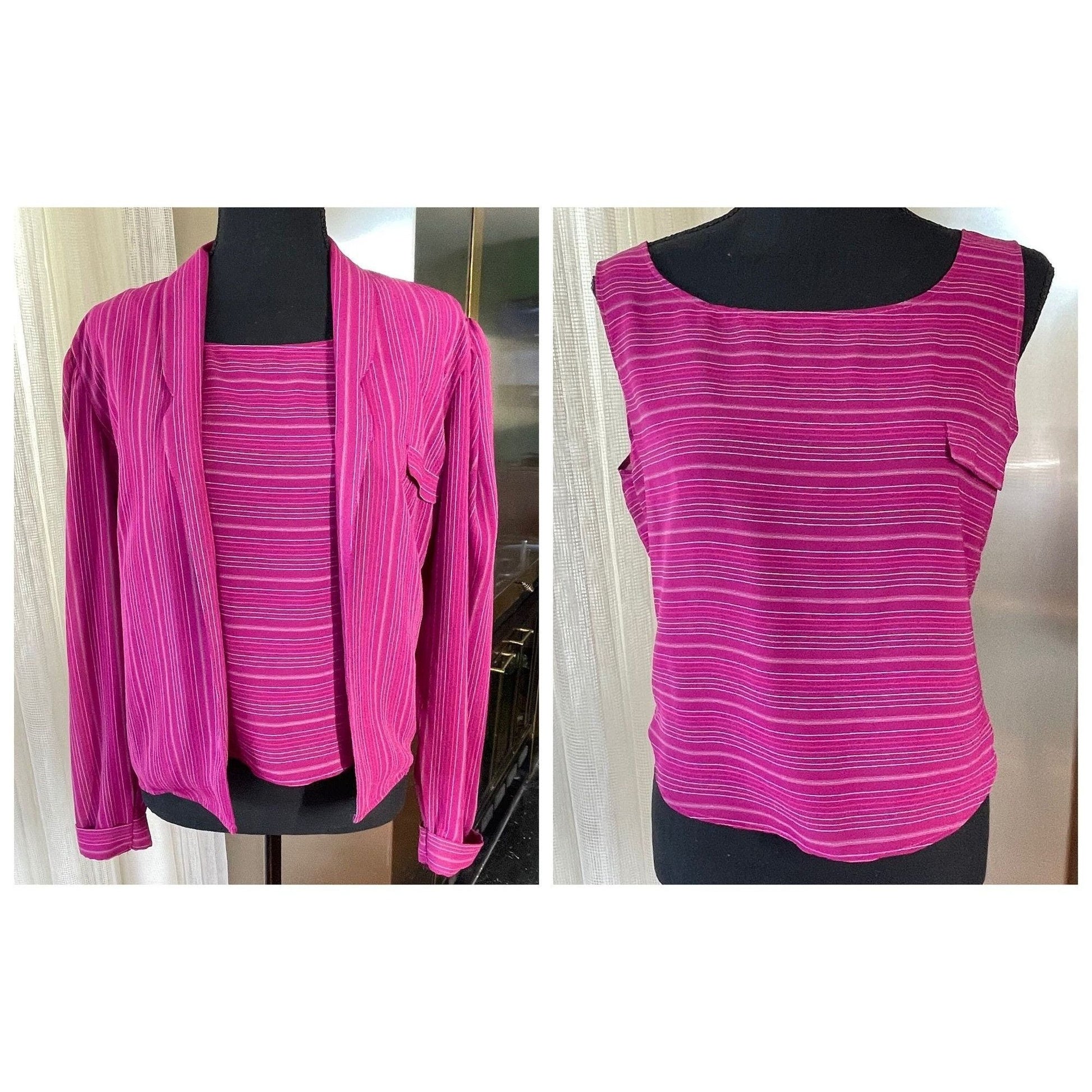 Vintage 80s twinset, pink striped long sleeves blouse with camisole