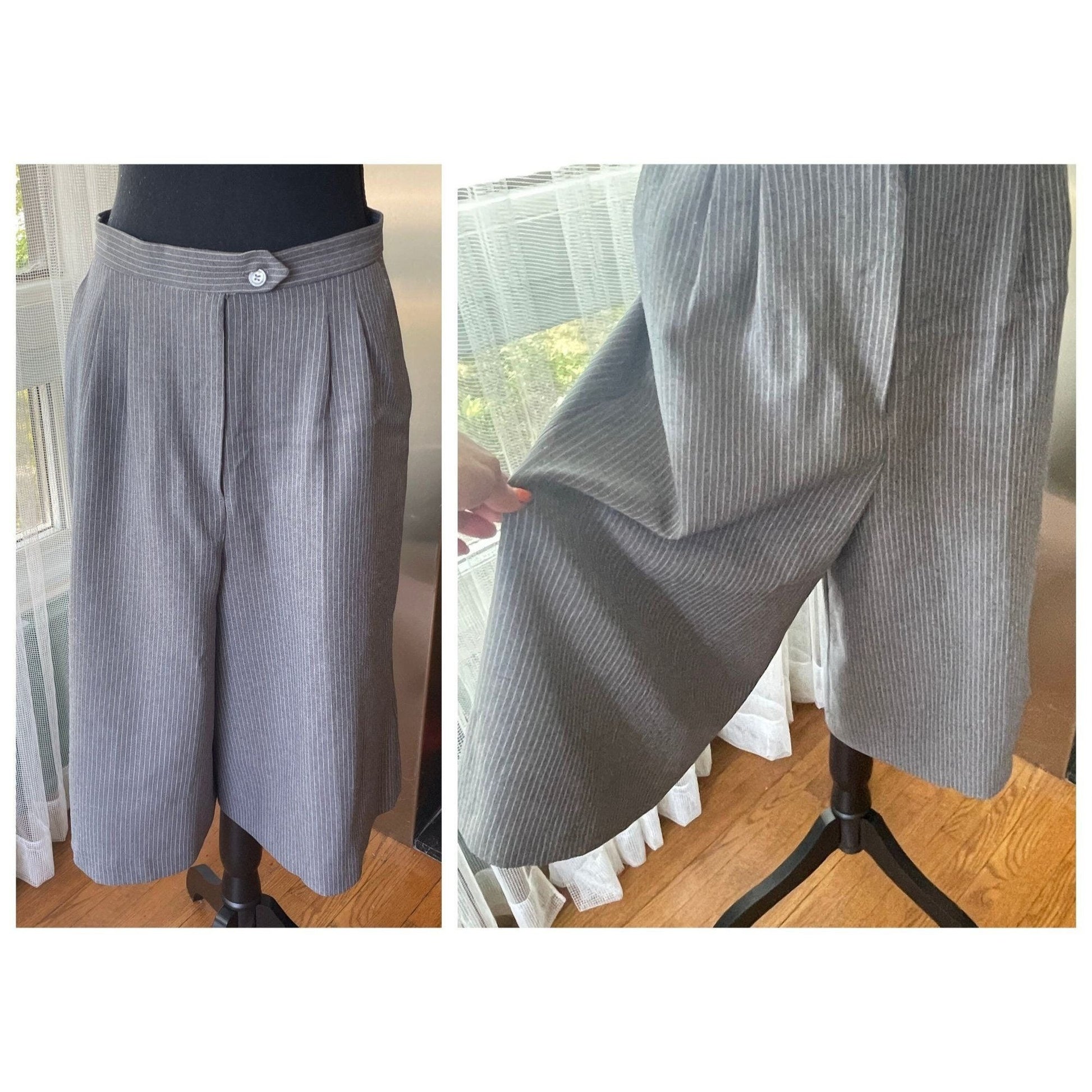 Vintage 80s culottes, grey pinstripe pant skirt