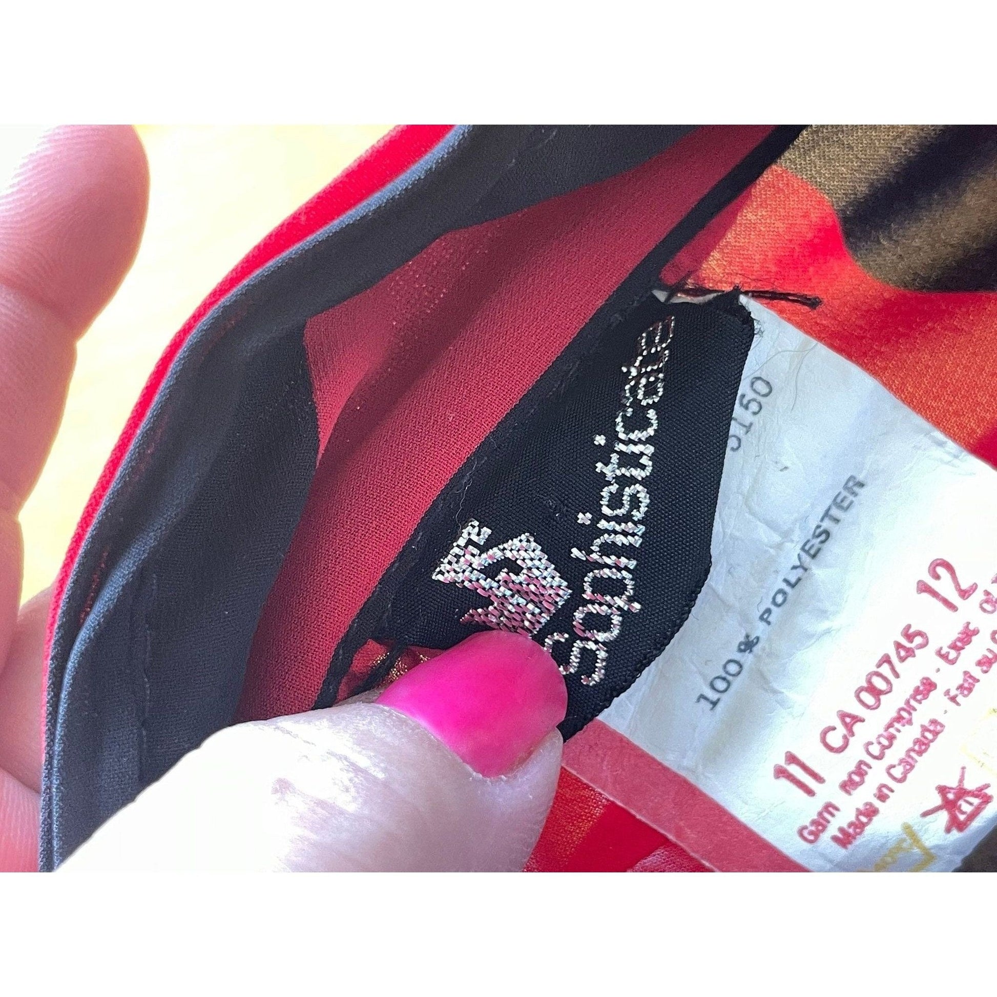 COLOR AND MATERIAL: Red, black; 100% polyester