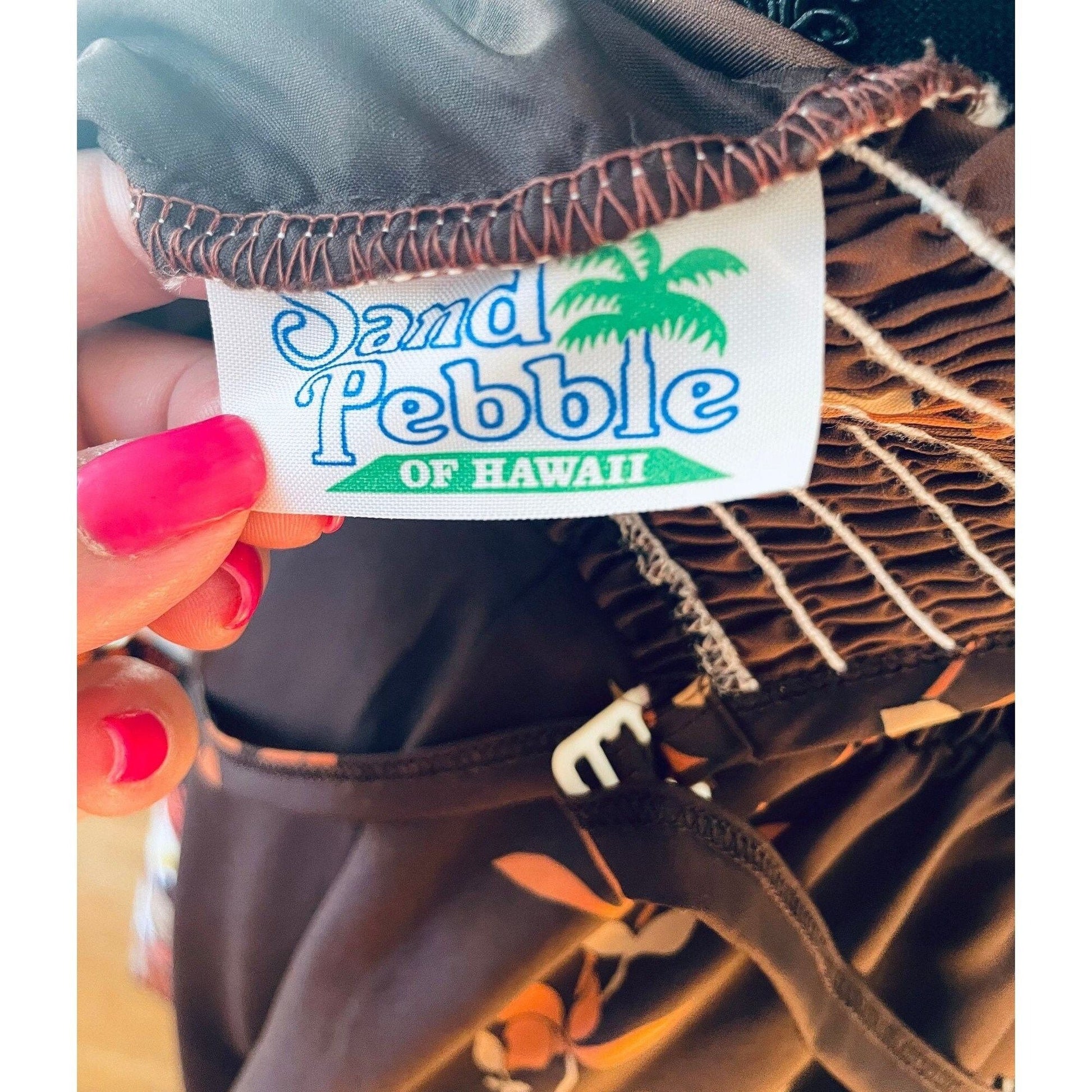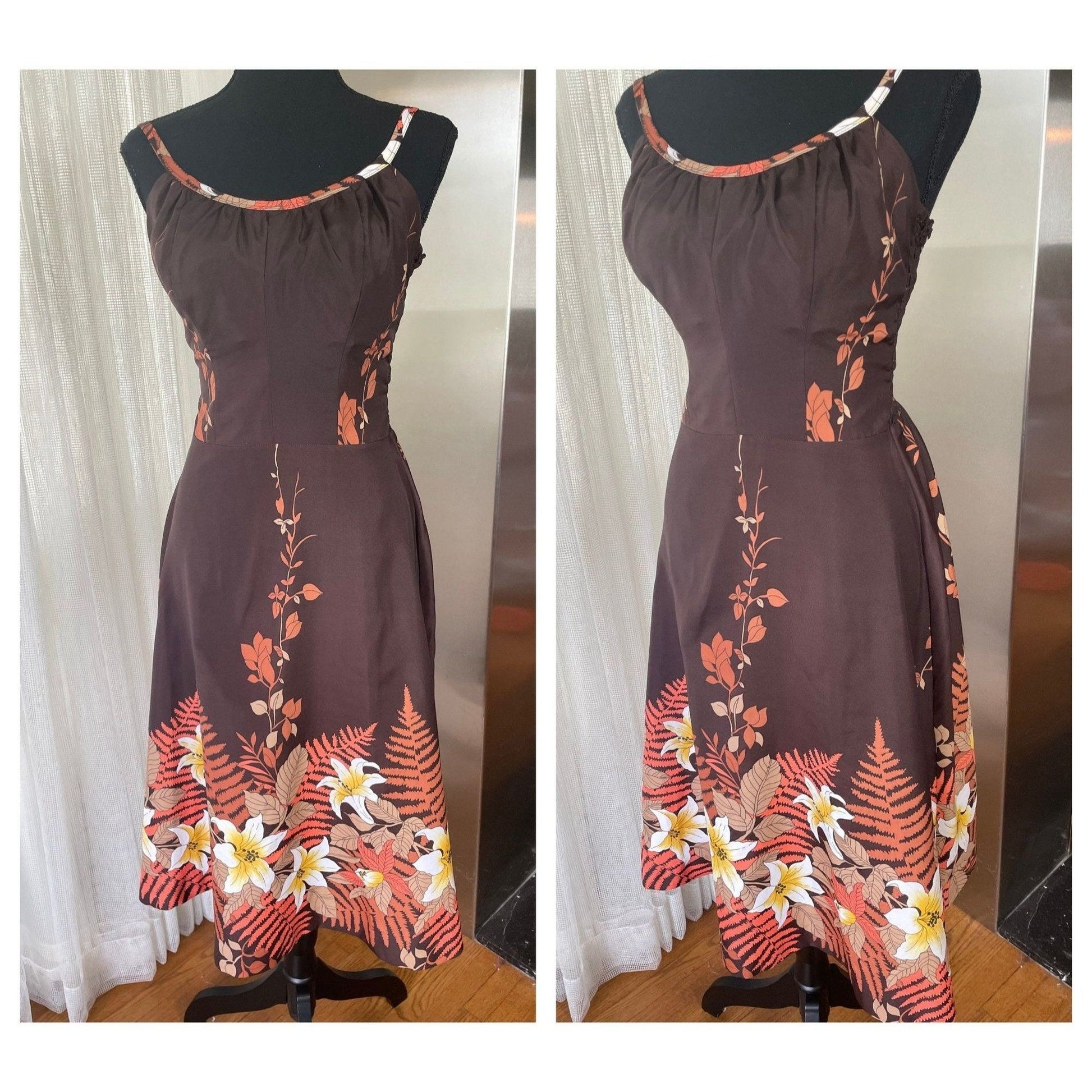 Vintage 80s dress, chocolate brown, sleeveless, bra inserts, Sand Pebble of Hawaii