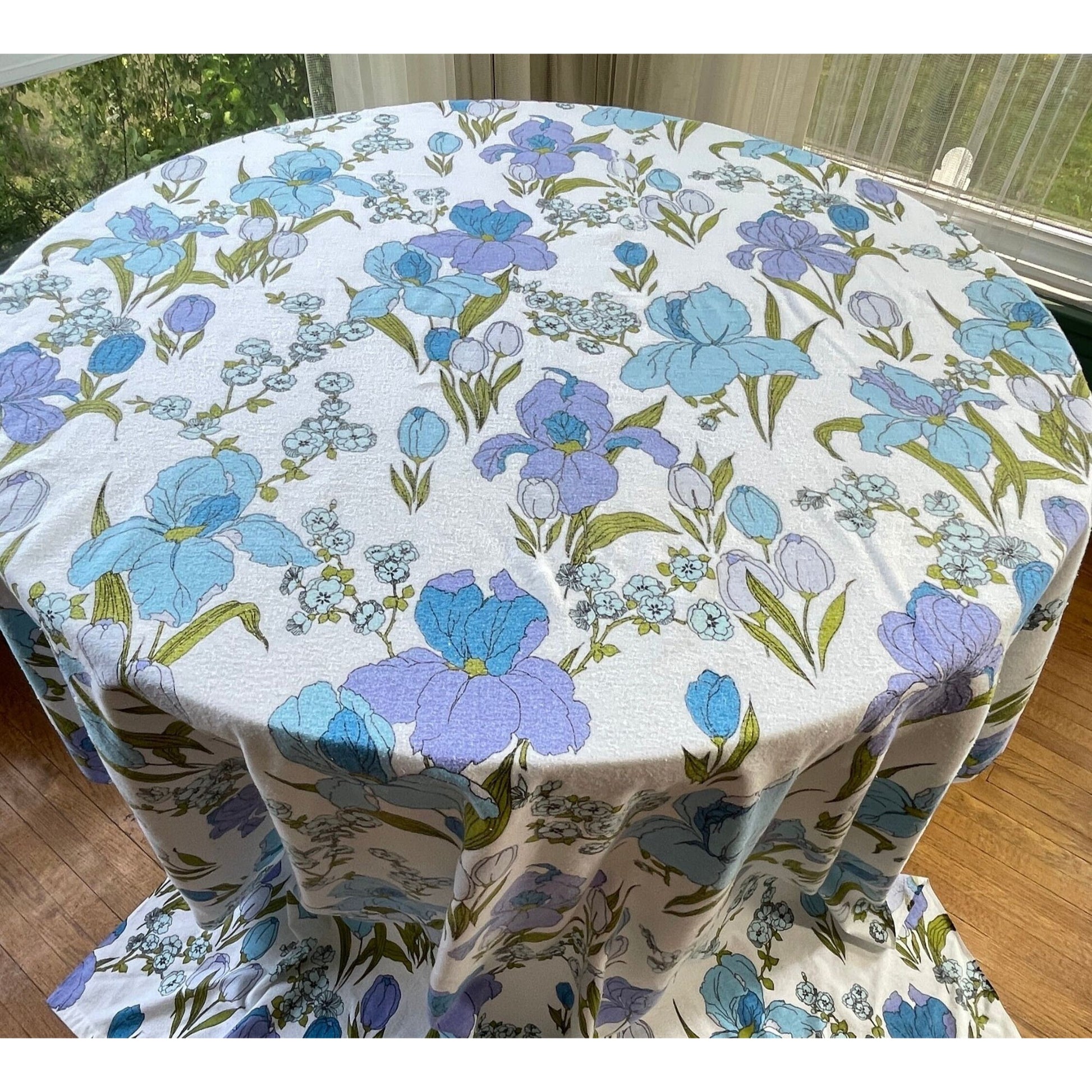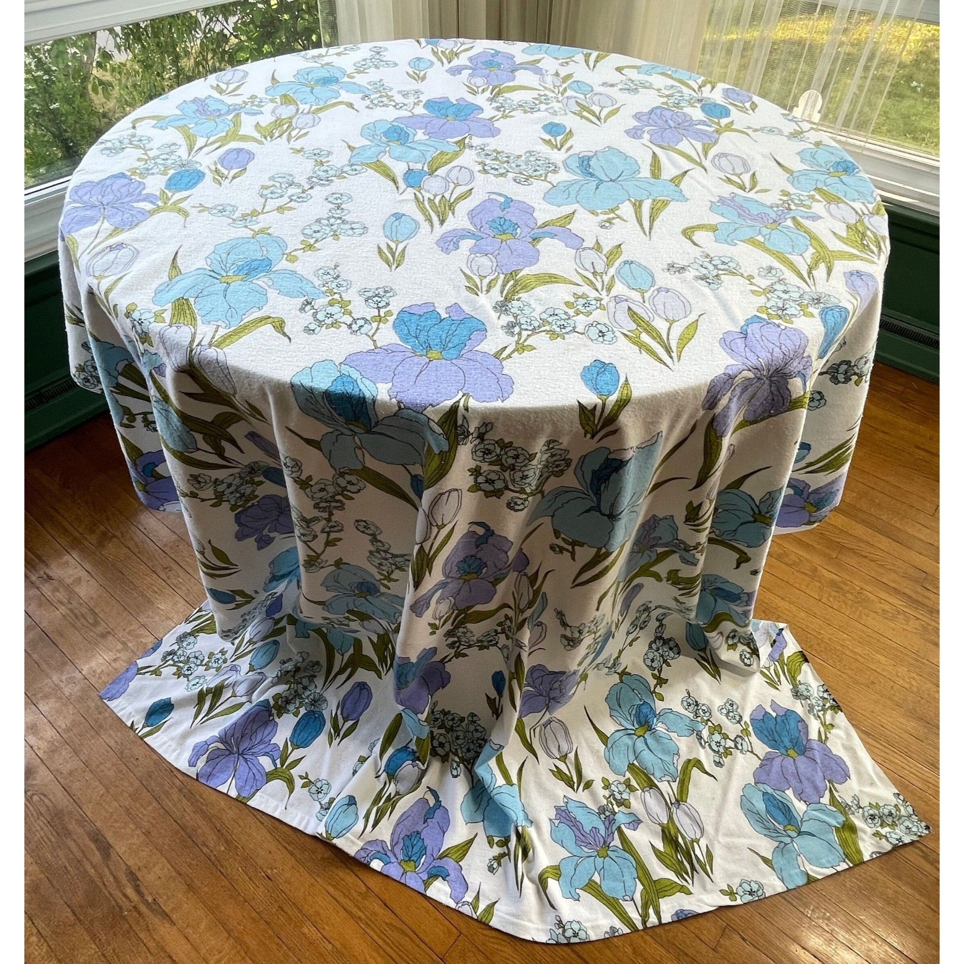 Large bold iris pattern in blue, green and purple