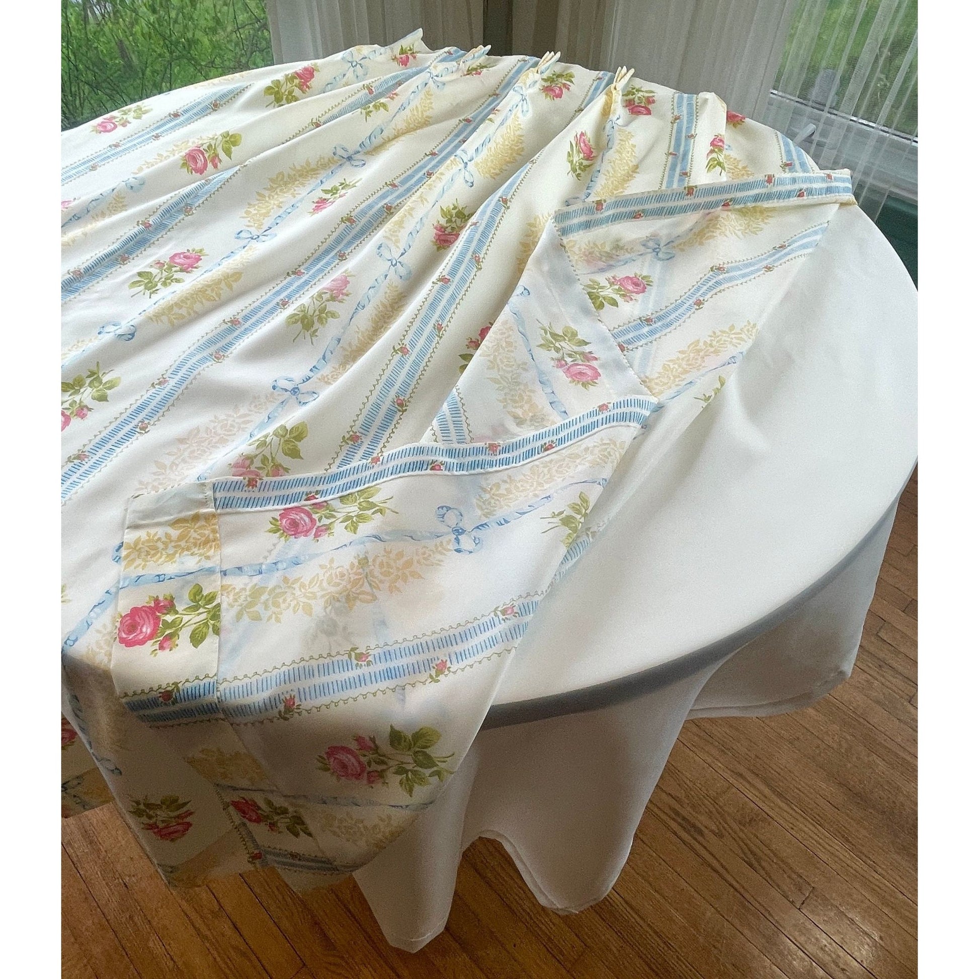 Vintage pleated curtain, blue, pink flowers, lined panel
