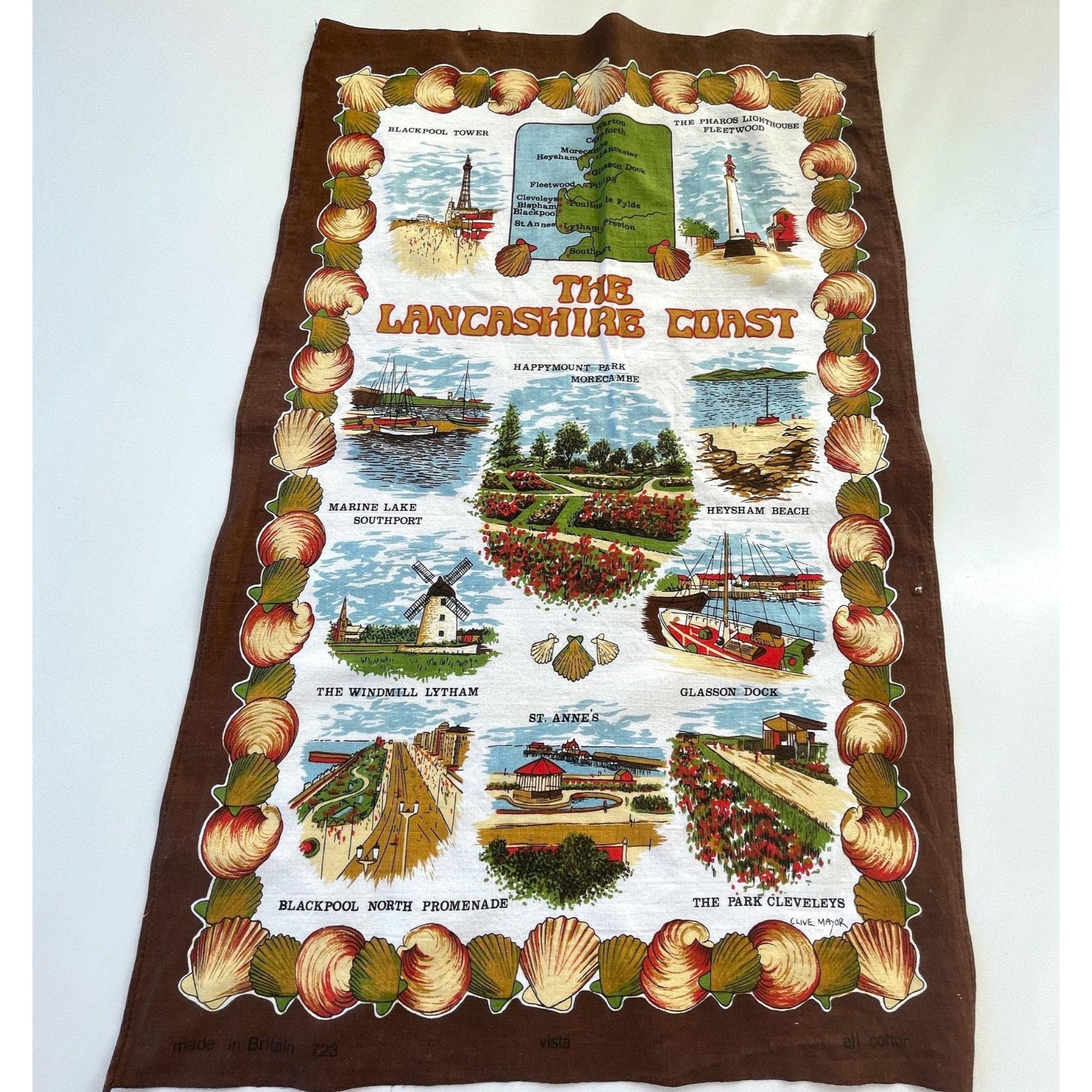 Vintage Lancashire Coast tea towel, made in England by Vista, 100% cotton, designed by Clive Mayor.