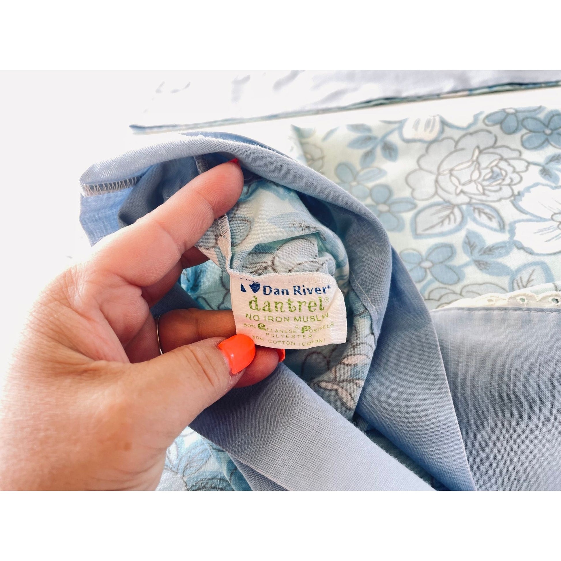 Vintage 70s pillowcases, blue flowers , Dan River Dantrel