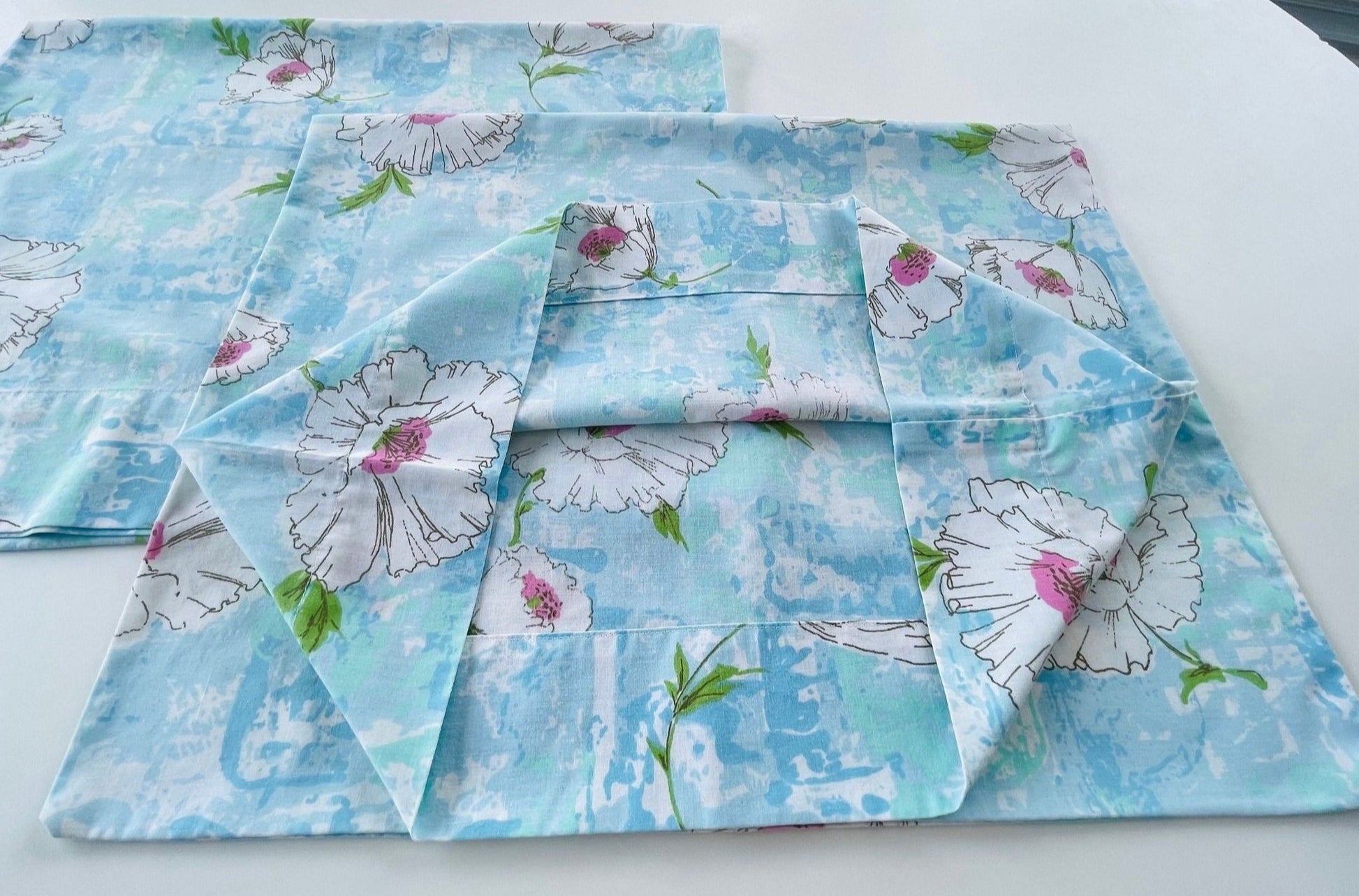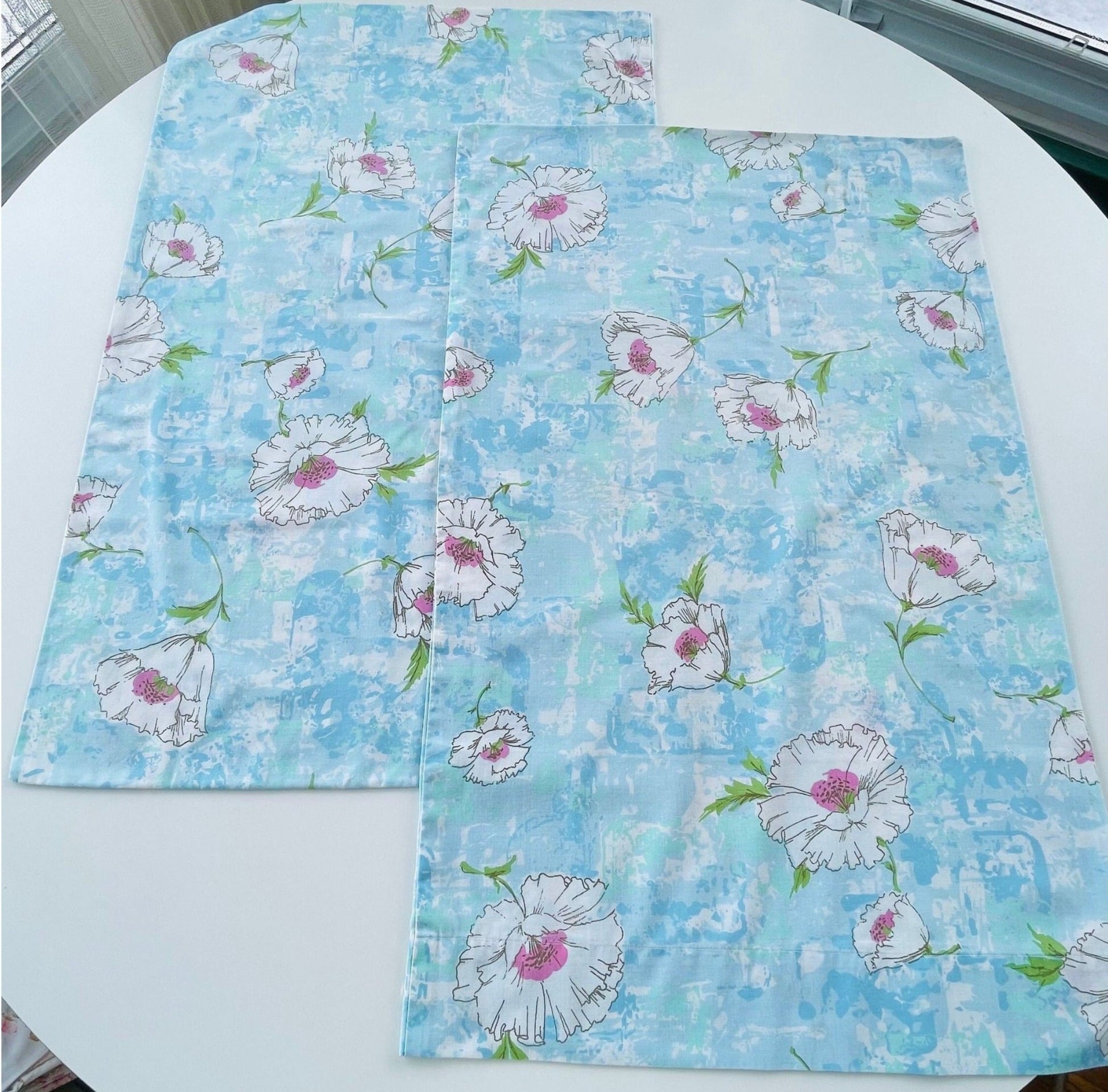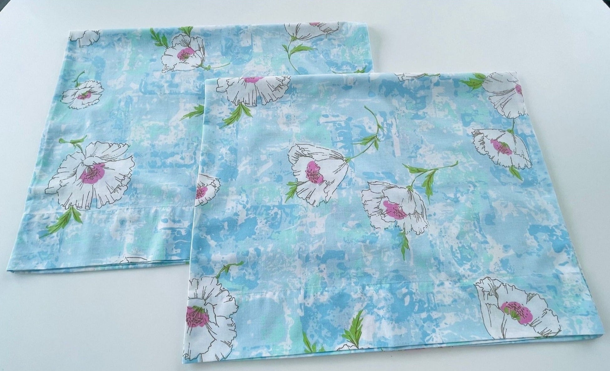 Fabulous set of 70s pillowcases, large white and pink flowers