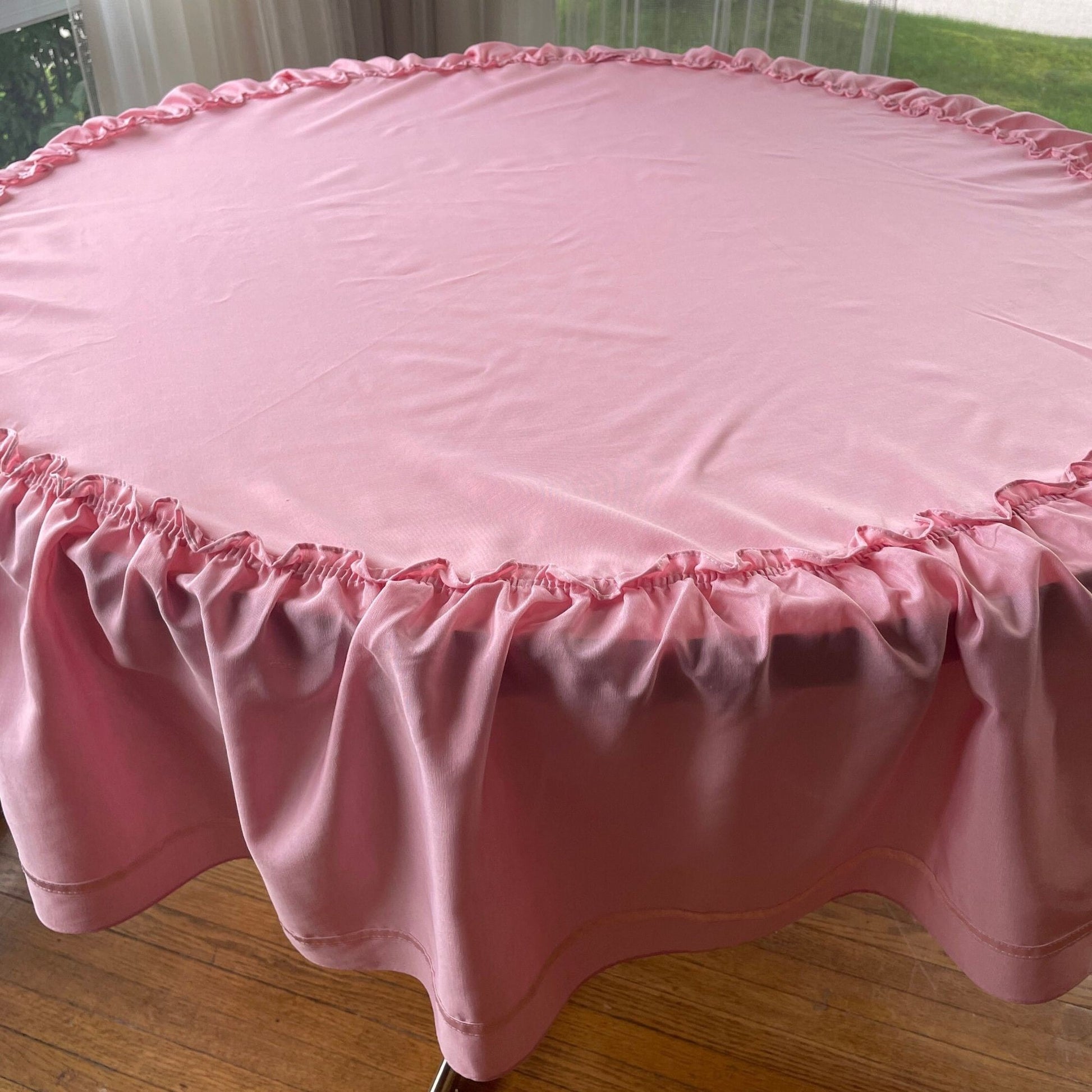 Very large 13" ruffle, with a satin trim at the bottom. Unknown material, likely cotton polyester blend.