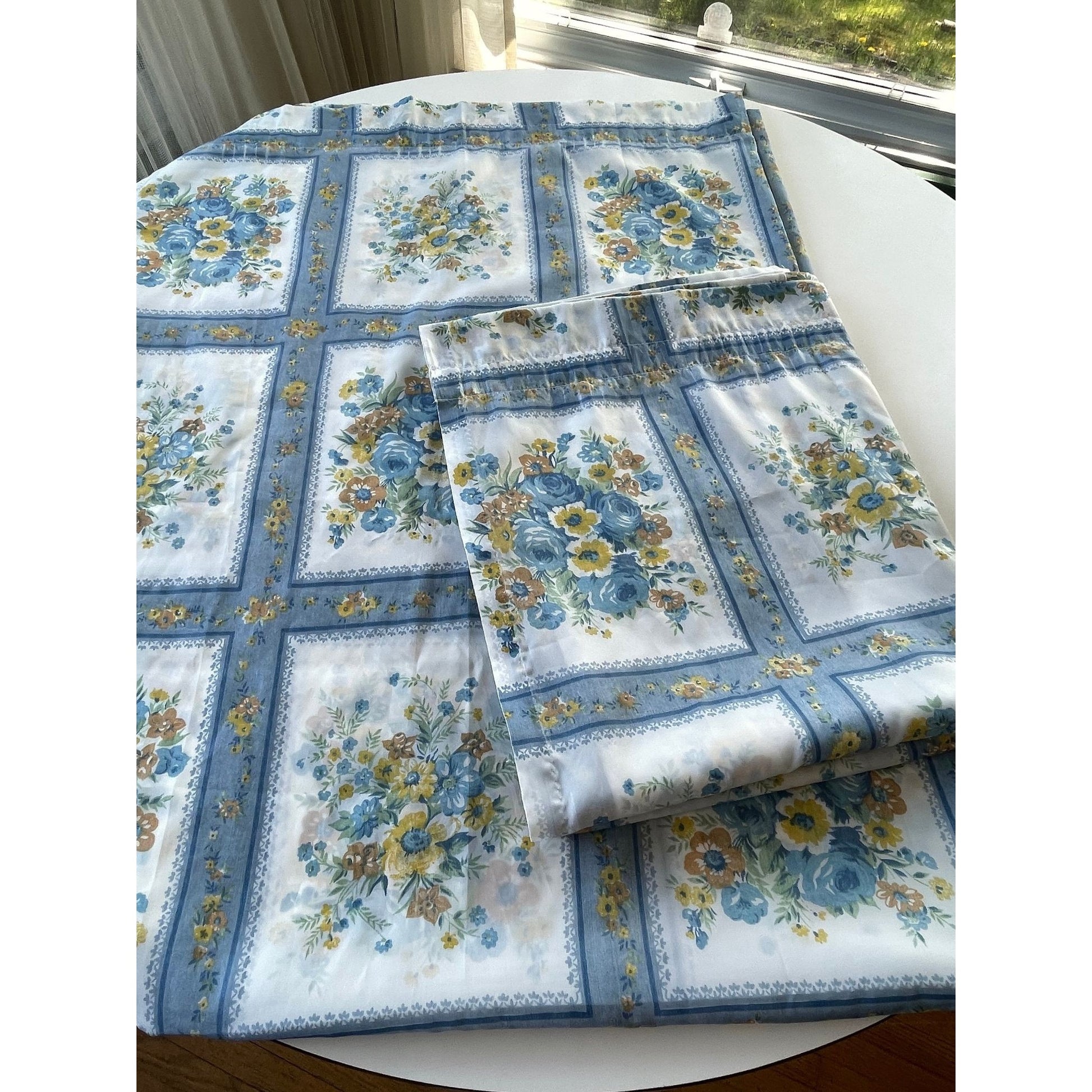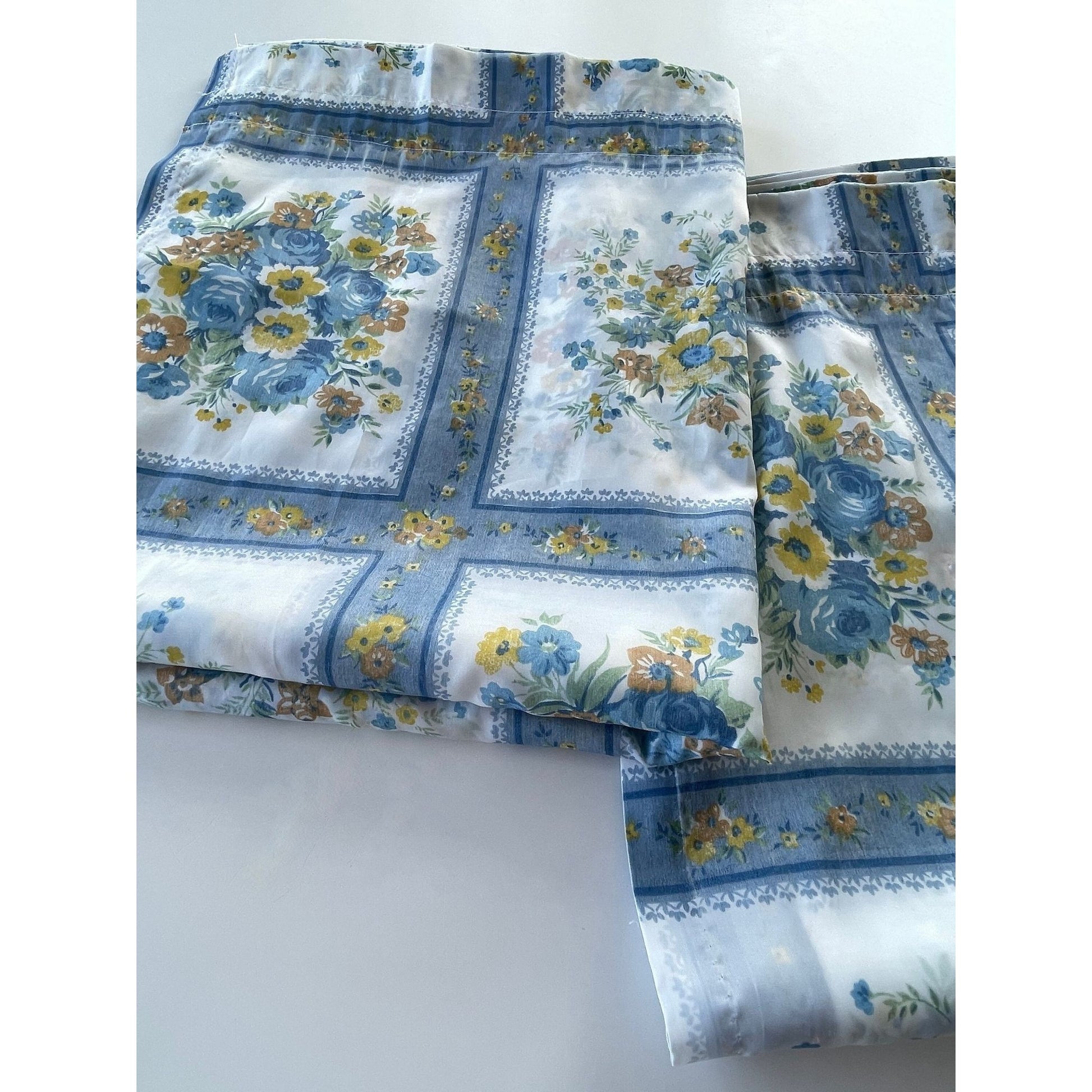 delicate flower pattern, in large blue squares over a white background. They are pretty sheer although not completely transparent.