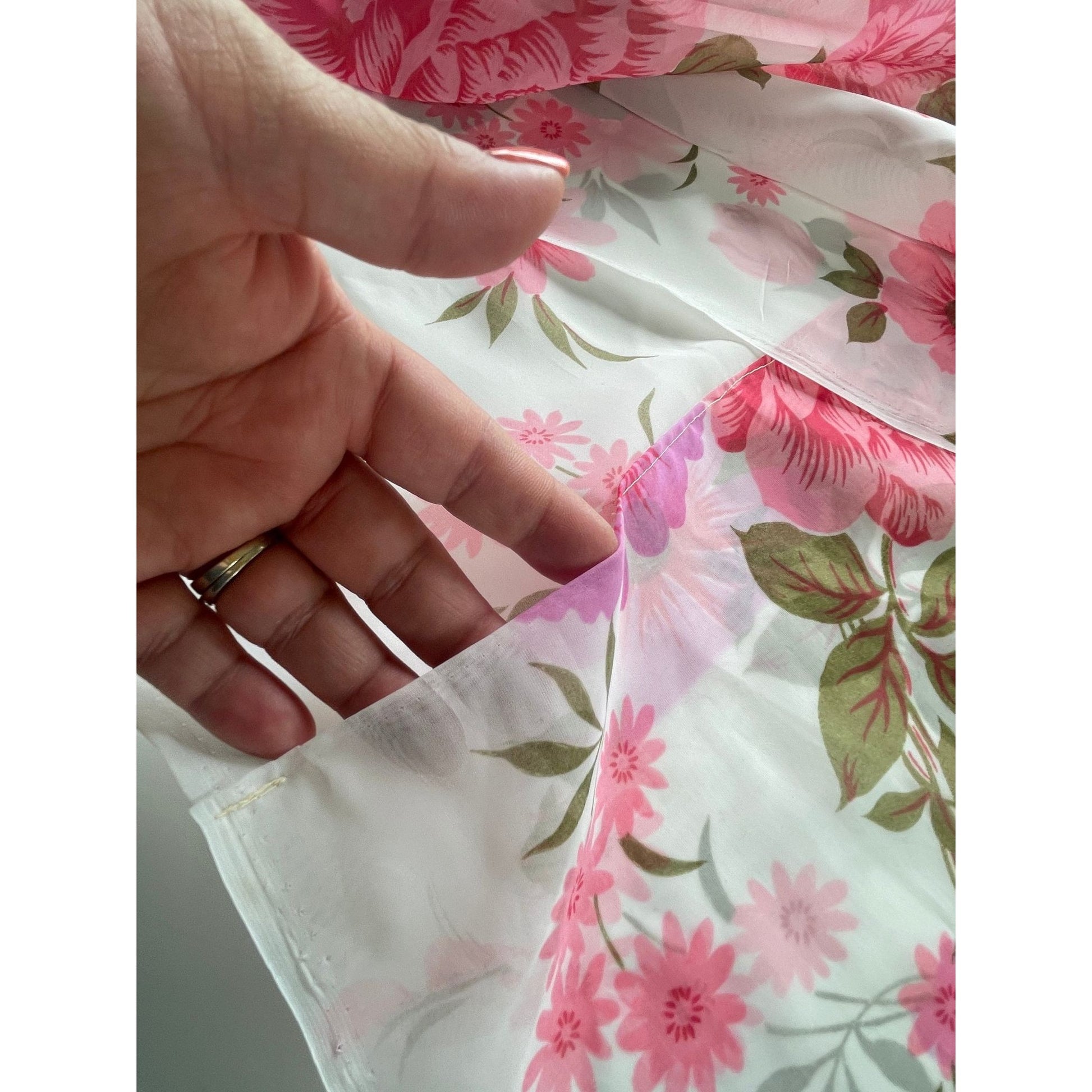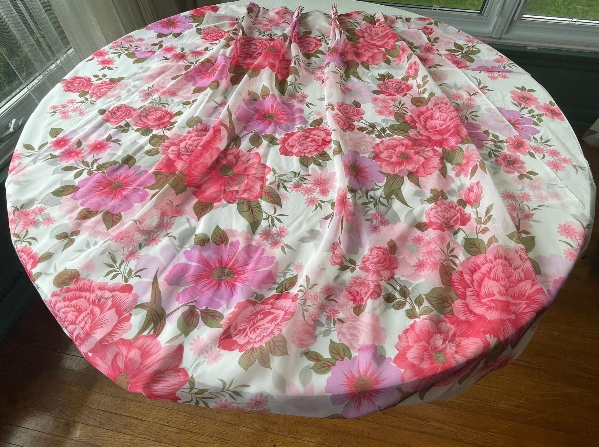 Vintage 50s sheer pink floral pleated curtain