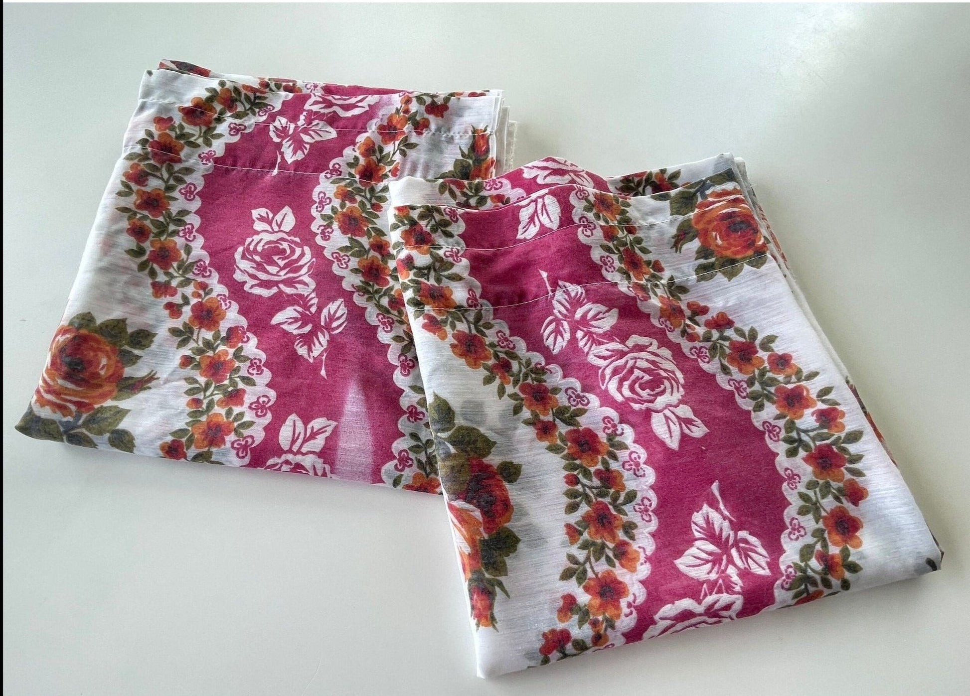 Fabulous 70s vintage floral curtains, pair of panels.