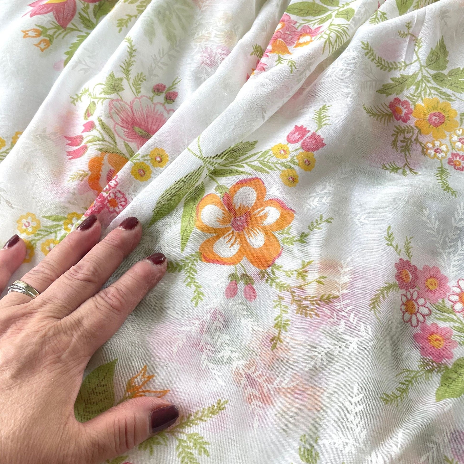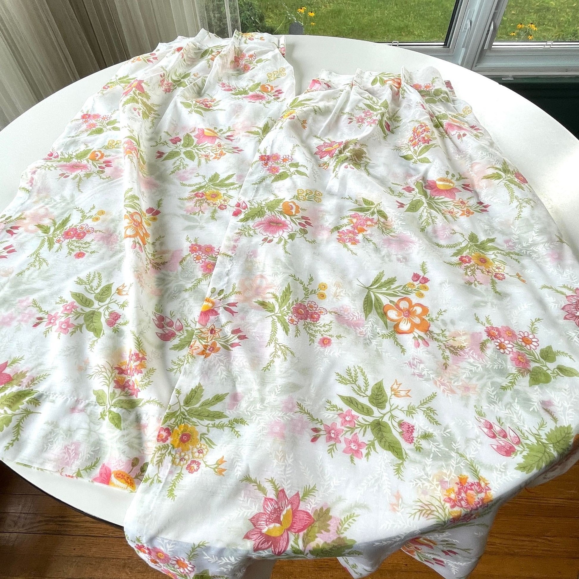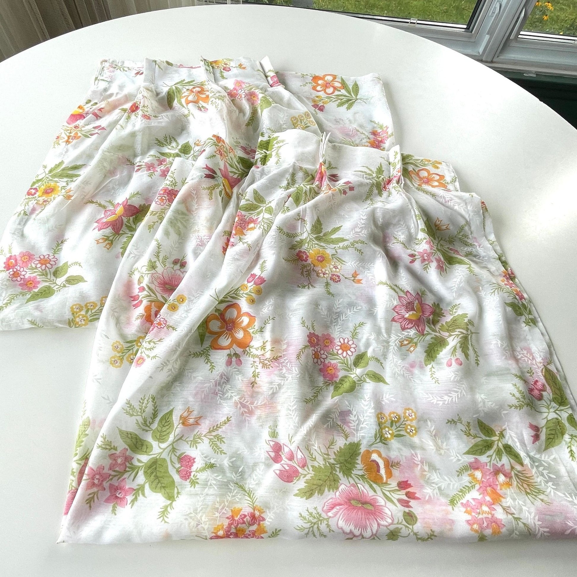 Vintage 70s pleated curtains, orange pink yellow flowers